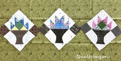 シックなバスケットのタペストリーもサンプラーキルトもキルトが順調に進んでいます。
