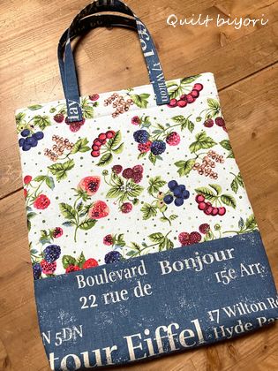 A4ファイルのためのバッグが出来上がりました。フルーツというか美味しそうなベリーの柄で、可愛いけど大人っぽいお洒落な綿麻生地です。ジーンズの···