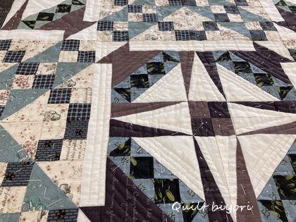 シックなサンプラーキルトのキルティングも進んでいます&秋の花束
